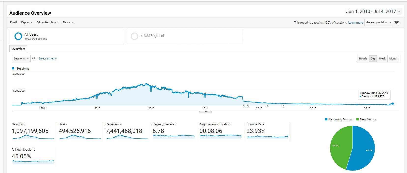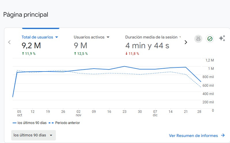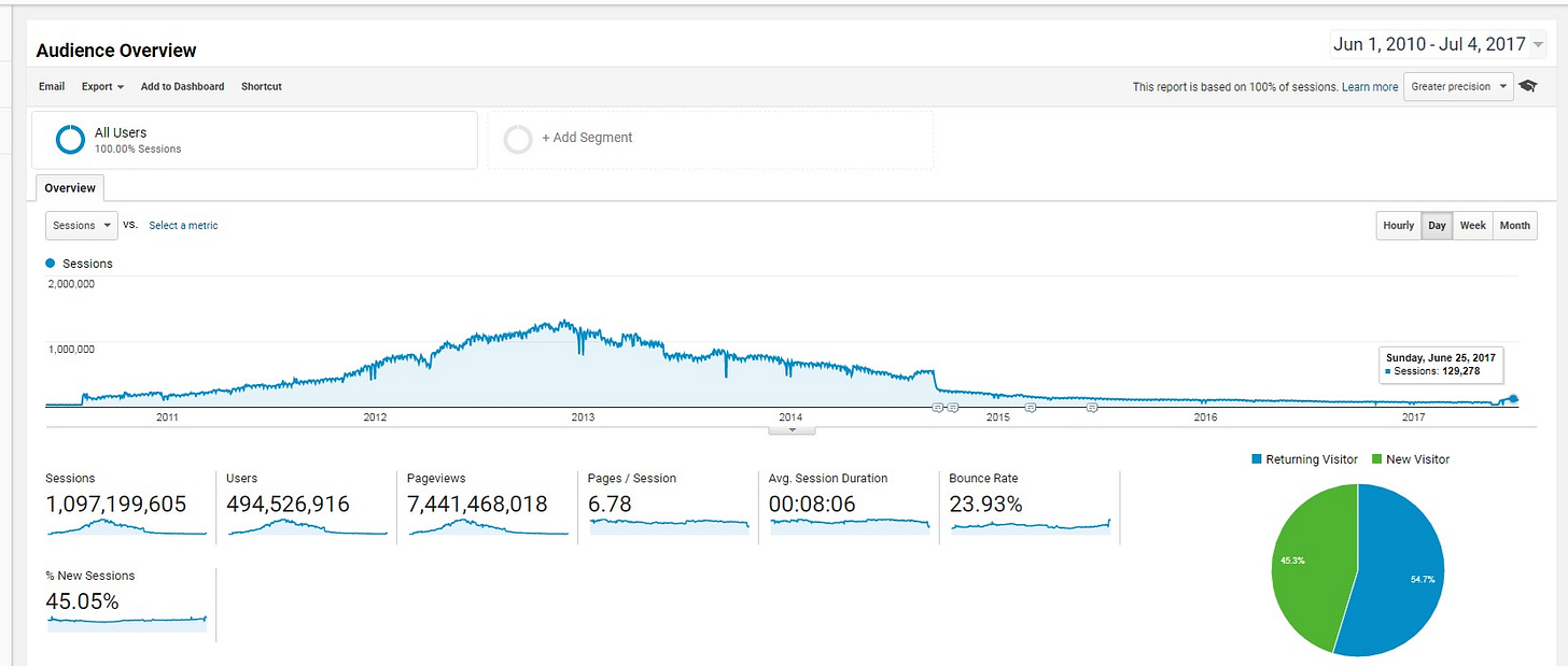 Gráfico con uno de mis proyectos webs secretos con más de 1.000 millones de visitas y 494 millones de usuarios únicos.